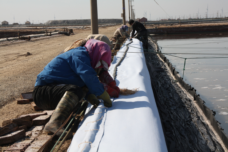 3月14日下午,风和日丽,在日晒制盐公司广阔的结晶生产区,洁白的盐廪、洁白的格堰在阳光照耀下,显得格处醒目,只见工人们有的在扒盐,有的在破碴,还有的在更换塑布......全公司上下一派大干场景。爱体育首页(中国)网页版在新河制盐分公司的八班一期生产区,只见工人们两人一组,蹲在池堰边,用土工布固化格堰,进行滩场亮化,这一片区域是公司正在建设的食用原料海盐生产基地。在一期与二期间的生产路上,爱体育首页(中国)网页版遇到了该公司经理安树林,他正从南边班组一路检查走来,他告诉爱体育首页(中国)网页版,自公司职代会召开过后,新河制盐分公司通过支委会、班组会迅速传达公司职代会精神,贯彻落实班组承包方案,对照全年产盐55万吨的目标,做好任务分解。当前盐业生产积极做好破碴、活碴、更新塑布等工作,全力推进扒盐工作,今年以来已经扒盐3.6万吨。