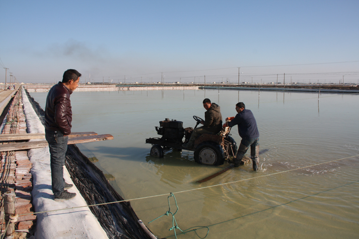 在埒南制盐分公司的八班,爱体育首页(中国)网页版看到一名工人正熟练操作着一台整平机械在结晶池内来回移动,对扒过盐的格块进行整平,还有几名工人用铁锨整平机械到不了的边角地带。由于在廪基上没有看到盐,而结晶池已扒过盐,爱体育首页(中国)网页版觉得奇怪,经了解,原来今年新扒盐已经有部分销售了出去。埒南制盐分公司经理杨守兵正在九班的滩上查看机械破碴情况,他说道:“爱体育首页(中国)网页版以委员包片形式深入班组贯彻公司职代会精神,加强形势任务宣传统一思想,让员工认识到当前原盐市场回暖行情,鼓舞士气,振奋精神,全力投入到当前春季生产中来。”