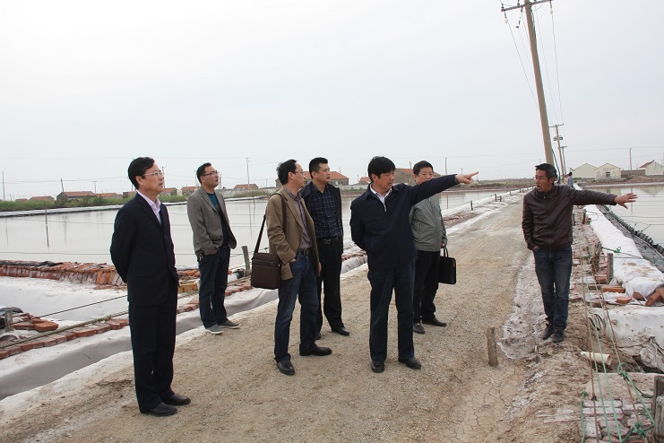 市人社局这次来我公司主要就日晒制盐公司生产环境、一线盐工劳动条件、工作负荷等情况进行现场调研。在埒南制盐分公司九班现场,古浩光副总经理向考察组详细介绍了日晒制盐公司采用传统海水制盐工艺进行矿卤日晒制盐的生产工艺;李国文总经理就劳动用工管理方面进行了介绍,他指出,近两年,公司虽然通过技术创新,逐步利用机械化代替人工,班组用工也由16人精简到10人;但工人的劳动负荷依然比较重,扒盐、活碴、修补塑布等忙个不停,特别在下雨天时,工人还要进行冒雨拉塑布排淡等,工作十分辛苦。