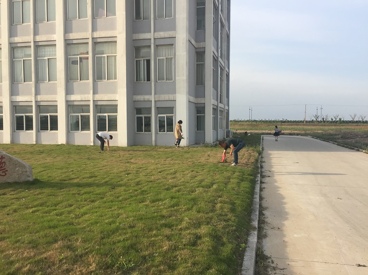 随着气温的升高,公司办公大楼前平整如毯的草坪,一段时间不处理就杂草丛生,影响美观,在机关党总支部的组织下,机关各部室工作人员利用下班前的半小时时间,众人齐上手,有的用手拔,有的拿着垃圾华袋,将杂草与垃圾往外清理,完全不顾手上沾满了又黑又黏的草汁,干得十分认真。