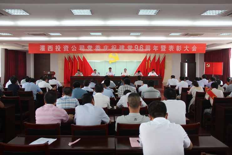 6月30日,灌西投资公司党委隆重召开庆祝建党96周年暨表彰大会,公司党委领导班子全体成员、各单位副职级以上党员、机关全体党员以及受表彰的优秀共产党员、优秀党务工作者党员参加大会。