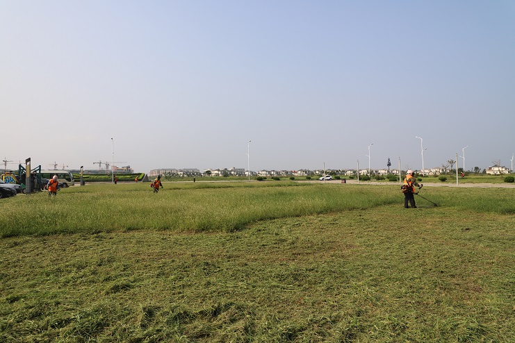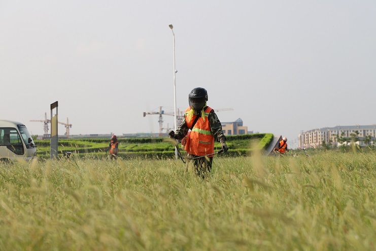 连日来,在临港产业区办公楼前,爱体育首页(中国)网页版看到几名南翼绿化公司的工人正在草坪上挥动割草机,忙碌的进行着除草作业。据了解,为了避开高温时段,他们早上6点就开始工作,许多绿化工人都是五点多在家匆忙吃完早饭就赶往工作现场,有的甚至空腹上阵。工作现场,在经过一个夏天的生长,不少地方的杂草都近半米高,草丛内还有不少的碎石子等杂物,为了做好自身防护,工人们穿着厚厚的衣裤,戴着口罩、头盔,肩扛除草机,一工作就是一上午。虽然近阶段气温逐渐下降,但近30°的气温还是让工人们吃不消。为了尽快完成工作目标,每一名工人都在咬牙坚持,默默地为更多的人营造一个优美、整洁的环境而做出自己的贡献。(封杨)