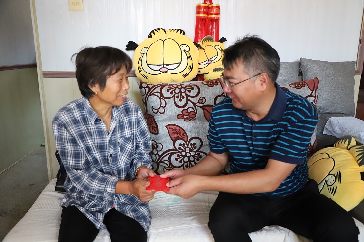 “现在身体还好吗?儿子现在怎么样?”在困难群众于兰英家里,王德志董事长一进门就关切的询问她的生活状况。“感谢公司党委的关心和照顾,目前家里一切都好。”看到王德志董事长的到来,于兰英有些激动的说道。