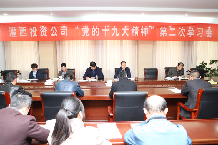 11月10日,灌西投资公司党委召开“党的十九大精神”第二次学习会暨支部书记工作例会,公司领导王德志、李国文、古浩光、王宏,各支部书记、党群部门人员及挂职基层支部副书记年轻管理人员参加会议。