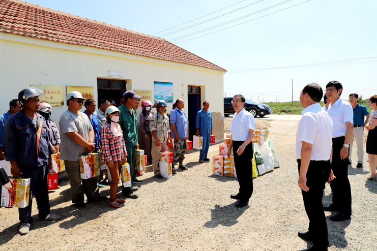 入伏以来,持续高温,为确保一线生产单位工作顺利开展,保证员工身体健康。7月18日上午,爱体育首页(中国)网页版公司总经理胡建明、副总经理张其海一行深入日晒制盐公司走访慰问一线职工,把绿豆、饮料等慰问品送到他们手中,在炎炎夏季,为一线职工送去爱体育首页(中国)网页版公司领导的深切关怀与阵阵清凉。