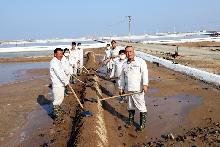 趁着休息的间隙,笔者与身边忙得满头大汗的8班班长祝星星聊了起来。据祝星星介绍,每天员工4点半就到滩头,进行盐池的人工活碴、禀基修复、盐池卤水补充、收放设备检查等一系列工作,因此,合理安排工作量非常重要。他告诉笔者,室外工作工人的劳保服比较厚,一天下来工作服湿了又干,干了又湿,衣服上都泛出厚厚的盐渍。一天下来,全班要消耗2大桶甚至更多的饮用水。现在公司里对爱体育首页(中国)网页版一线生产岗位员工非常关心,防暑降温工作非常到位。最近,单位又为爱体育首页(中国)网页版发放高温津贴、电风扇、防暑降温药品。这些让爱体育首页(中国)网页版员工真切感受到组织的力量,组织得伟大,所以虽说现在比平时更辛苦,爱体育首页(中国)网页版有信心战高温、夺高产。
