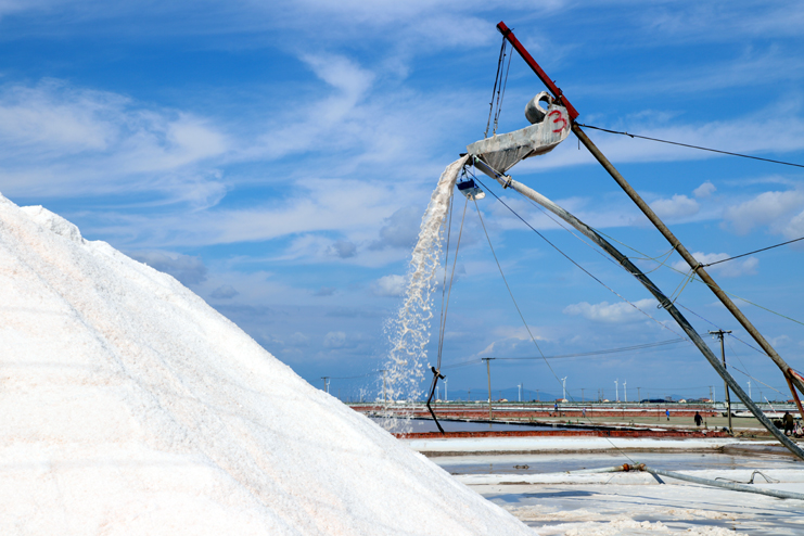 在10班扒盐现场,爱体育首页(中国)网页版看到扒盐机“T30”操作手正在娴熟的驾驶着机器在盐池内缓缓移动,远处的盐廪上,雪白的原盐正通过扒盐筛汇集而下,大廪工也不时的用分离板进行引盐疏导,洁白晶莹的盐晶蔚然成廪。据介绍,在扒盐设备上,今年日晒制盐公司全面推广使用五寸管道、轻型自吸式电动履带“T30”扒盐机、扒盐机盐池循环路径,轻型扒盐机降低了对盐池板的损伤,在扒盐效率上也有了很大提高,扒盐机盐池循环路径也进一步降低了工人的劳动负荷。据了解,目前新河、埒南两个制盐分公司共投入8台扒盐机组,中秋小长假以扒盐2万多吨,预计11月上旬结束。(张明建)