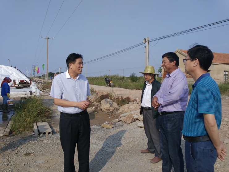 9月28日,西旺水产公司总经理茆庆军在投资公司副总经理古浩光的陪同下,慰问日晒制盐公司的扒盐机组,向坚守扒盐岗位辛勤工作的员工表示感谢。