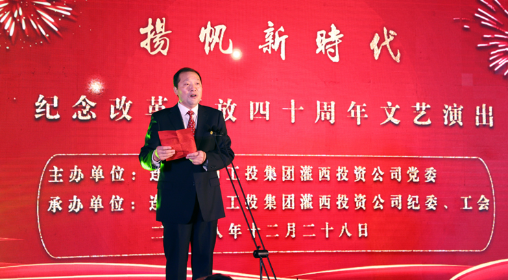 伟大变革,书写壮丽史诗;永志不忘,奋进复兴征程。12月28日,灌西投资公司以“扬帆新时代”为主题的庆祝改革开放40周年文艺汇演在灌云县临港产业管委会报告大厅上演。工投爱体育首页(中国)网页版公司领导戴鸿鸣、汪群、刘承志等领导与职工群众代表700余人共同欣赏了这台振奋人心的视听盛宴。投资公司党委书记、董事长、总经理李国文作了演出致辞。