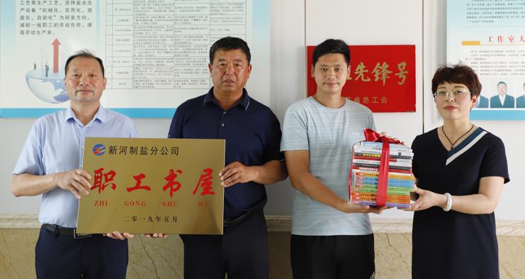 为鼓励和支持员工不断更新知识,激发员工自我学习的能力,提升班组核心竞争力,7月2日上午,灌西公司党委书记、董事长、总经理李国文,党委副书记、纪委书记、工会主席王宏为日晒制盐班组赠送图书并授牌。
