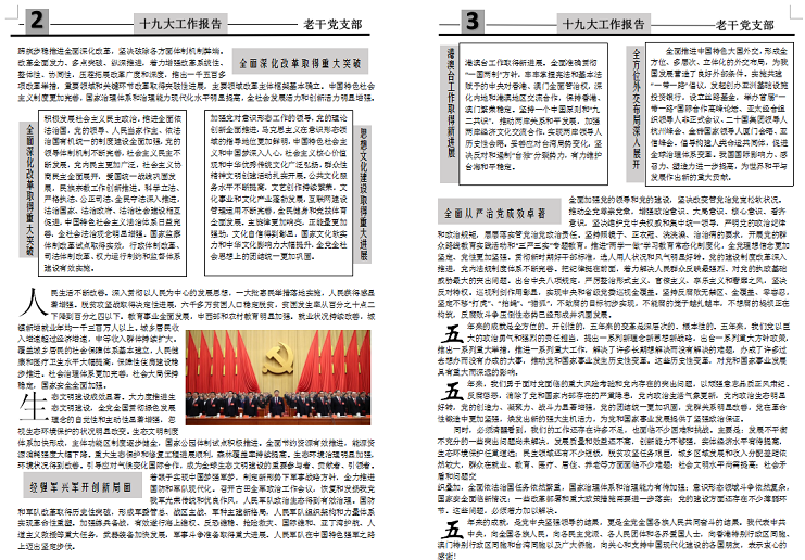老干党支部专门印发了十九大精神系列宣传小报,通过老年活动室使老党员们能静下心来“读原著、学原文、悟原理”。老党员们对学习十九大精神热情高涨,纷纷捧起小报仔细阅读。考虑到有的党员年龄偏大,老干党支部将定期在老年活动室组织十九大精神朗读活动。(唐蕾荣)
