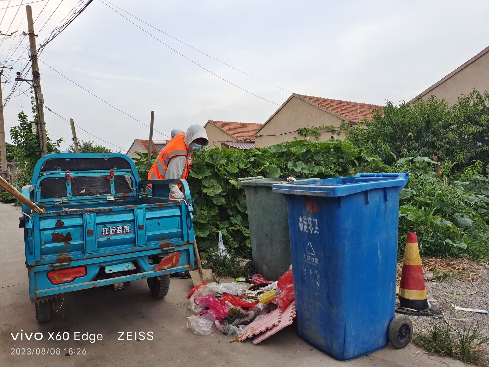 8月8日晚上6点,南翼公司环卫工人曹军标依然在中二圩小路巷子垃圾清理的点位上忙碌着,弯着腰将垃圾桶边的各种生活垃圾一一仔细清扫在一起。尽管是晚上,太阳还未落下,打扫了十几分钟,他已经汗流浃背了。“由于中二圩区域外地居住人口增加,各种垃圾也是不断骤增,我负责的主干街道完全打扫干净后,就来回地在小巷路道的点位进行“扫荡”,但是看到打扫之后的大街小巷变得干净清爽,我就会很开心。”曹军标一边擦着满脸的汗水一边说道。