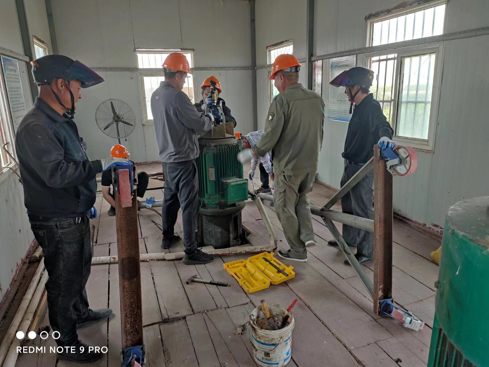 公司一方面组织技术人员前往扬水站进行修复,另一方面,安排水泵操作人员进行更换工作,以确保稻田的生产用水得到保障。技术人员前往扬水站进行修复工作。他们仔细检查了线路,发现线路地下埋线连接处的螺钉已经松动,需要更换连接处。经过两个小时的时间,将松动的螺钉更换掉,重新焊接了线路,确保其牢固稳定。水泵操作人员进行了更换工作,并进行了调试,确保新的水泵能够正常运作。