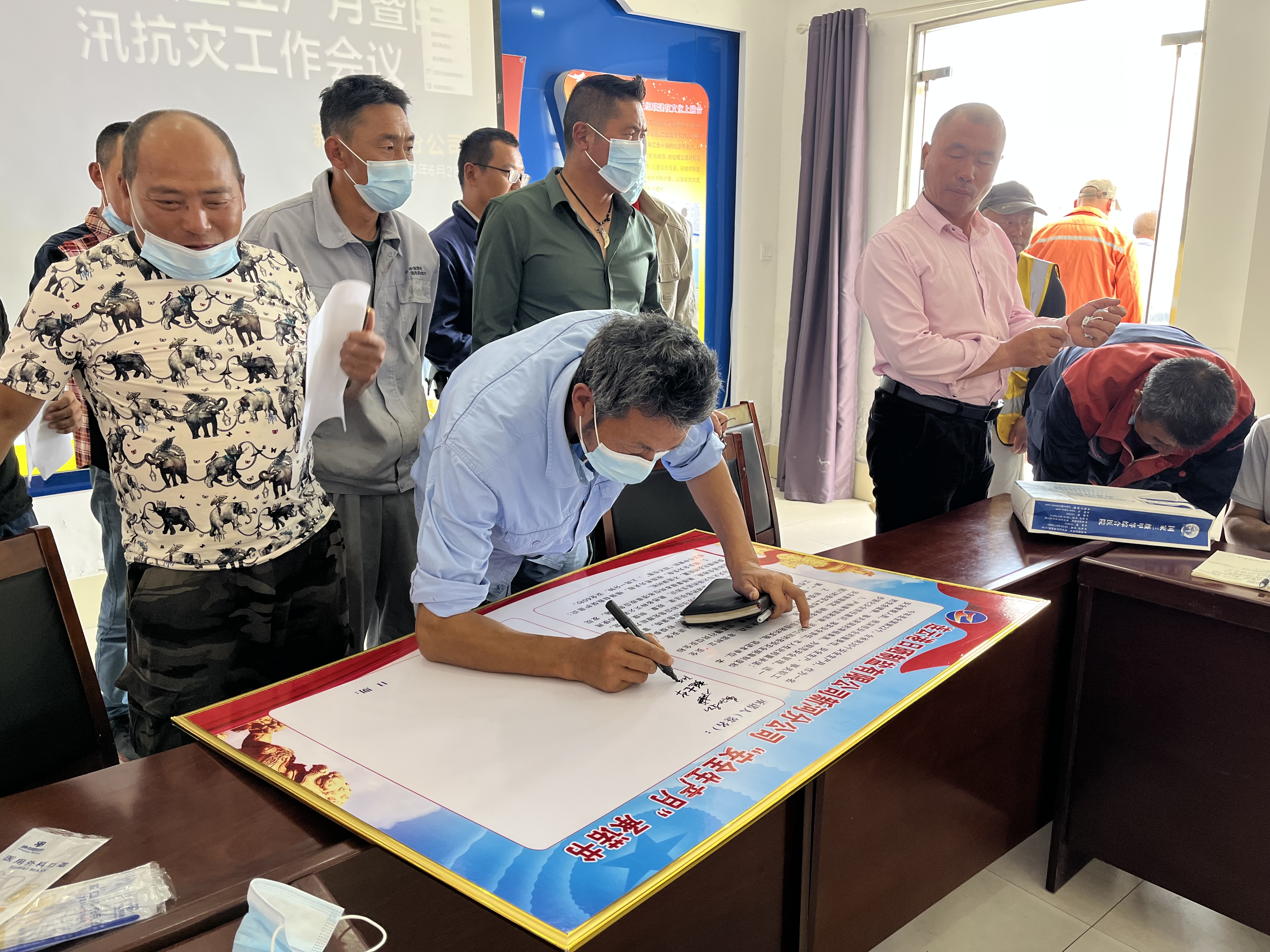 分公司经理程龙按照会议的要求对我公司的安全生产及防汛工作作出了进一步的安排部署,要求分公司全体人员手机在汛期做到24小时保持畅通,各班组对滩内的抗灾工程抓紧落实。特别是滩内的排淡沟道、塑池全封闭、、软禀脚、泥包、泥袋、小马凳等防风防雨措施要按期完成。后勤维护组抓紧完善用电设施、强排站等应急设备,确保汛期安全形势稳定。会议最后,全体班组长一起递交了防汛安全责任状,签订了“安全生产月”承诺牌。(赵斯中)