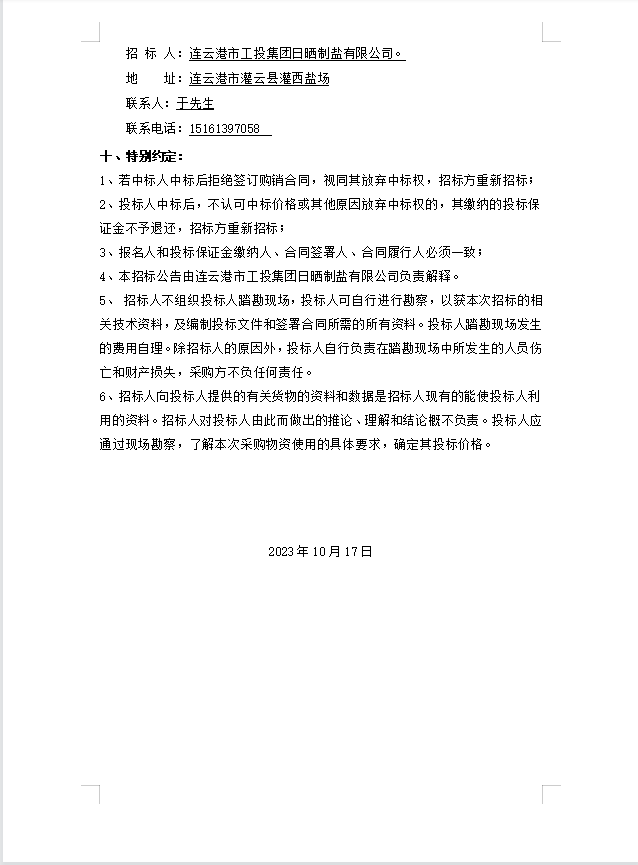 连云港市工投爱体育首页(中国)网页版日晒制盐有限公司玻璃纤维杆招标公告