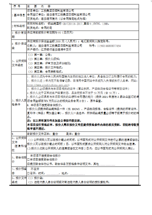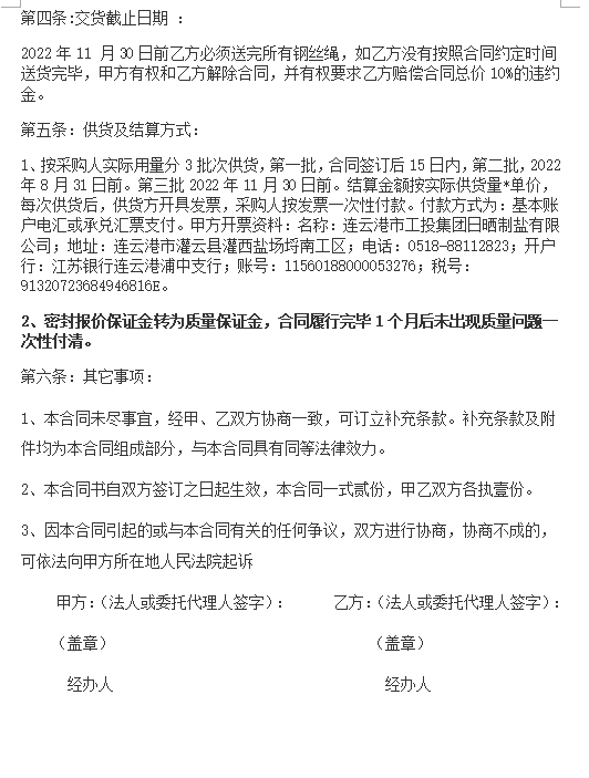连云港市工投爱体育首页(中国)网页版日晒制盐有限公司钢丝绳采购项目