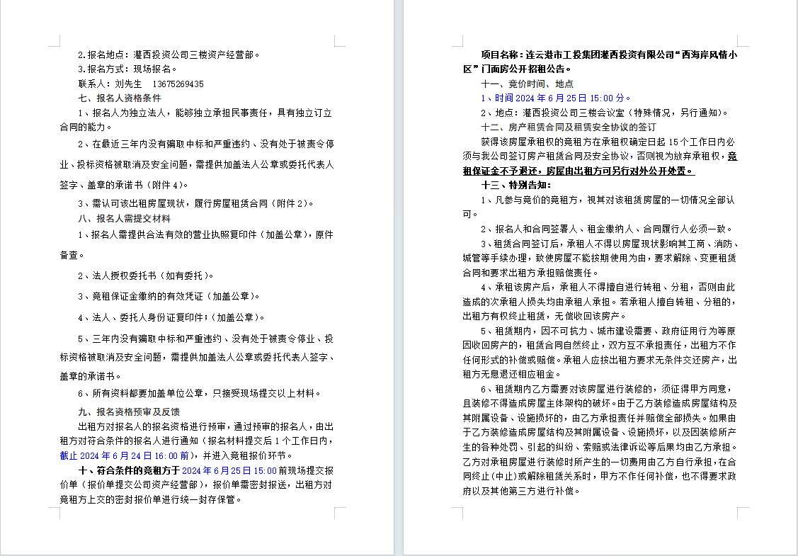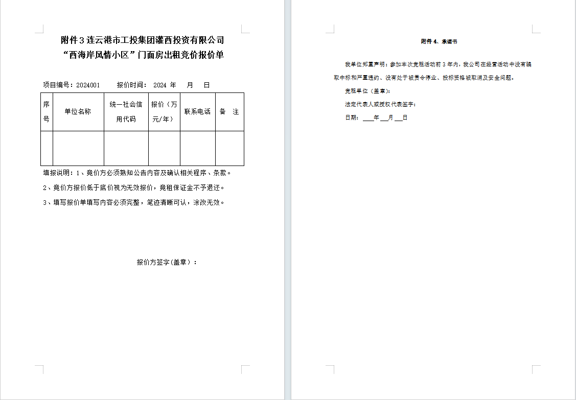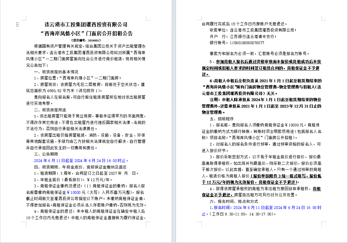 连云港市工投爱体育首页(中国)网页版灌西投资有限公司“西海岸风情小区”门面房公开招租公告