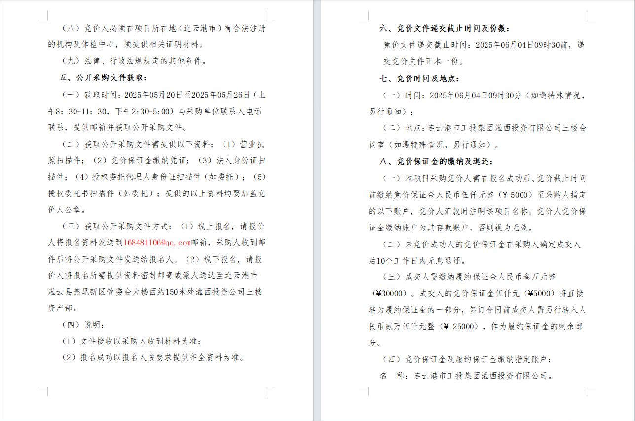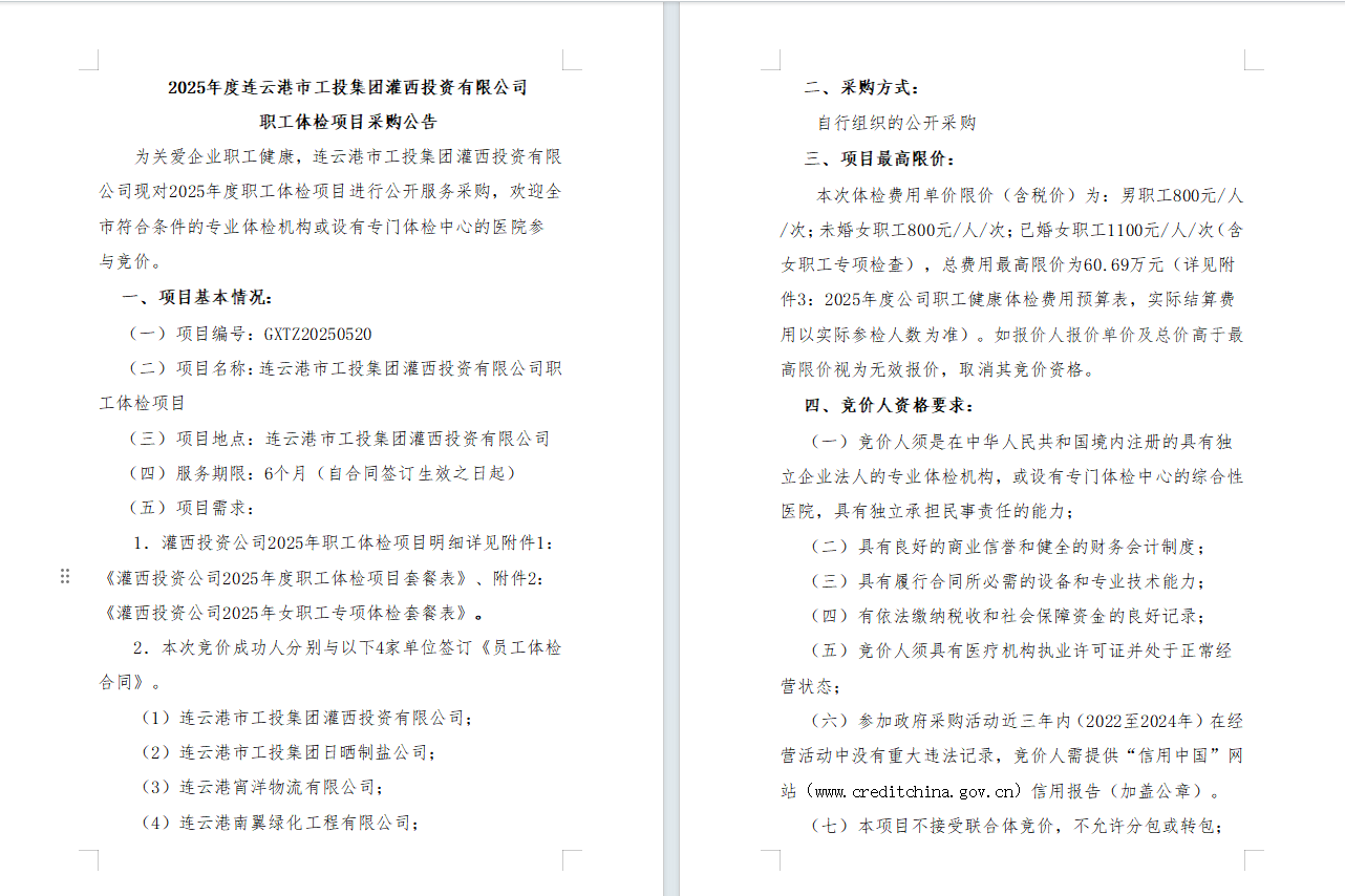 2025年度连云港市工投爱体育首页(中国)网页版灌西投资有限公司职工体检项目采购公告