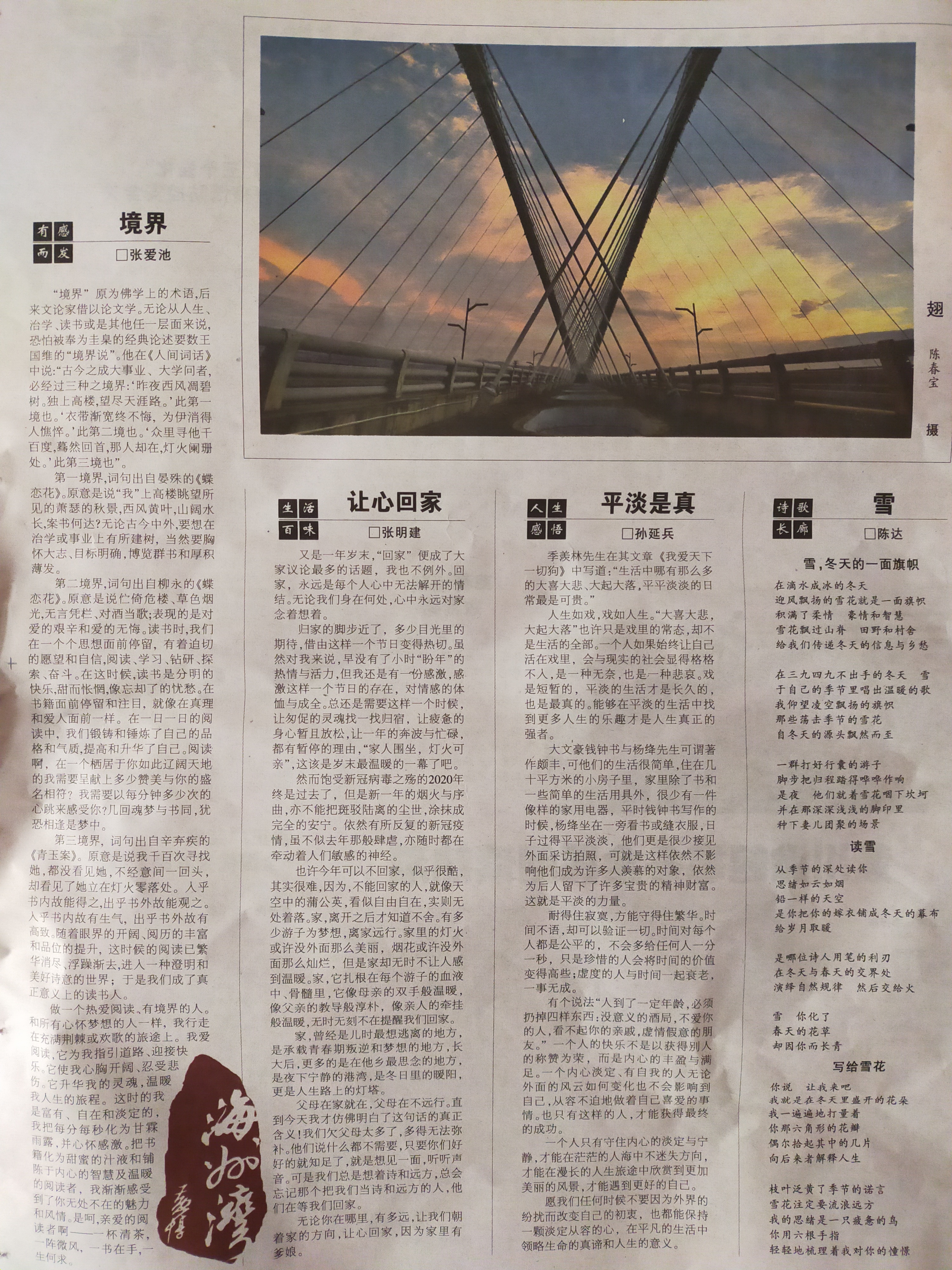 归家的脚步近了,多少目光里的期待,借由这样一个节日,变得热切。虽然对我来说,早没有了小时“盼年”的热情与活力,但我还是有一份感激,感激这样一个节日的存在,对情感的体恤与成全。总还是需要这样一个时候,让匆促的灵魂找一找归宿,让疲惫的身心暂且放松,让一年的奔波与忙碌,都有暂停的理由,“家人围坐,灯火可亲”,这该是岁末最暖煦的一幕了吧。