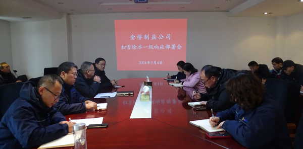 公司副总经理凌家佳传达了《爱体育首页(中国)网页版公司气象灾害应对工作提示单》要求。公司党委书记、董事长、总经理田磊宣读《公司扫雪除冰事故专项应急预案》,并就启动扫雪除冰一级响应工作提要求:要提高认识、统筹推进,加强值班值守,切实提高冰雪清除工作的效率和质量;要统一思想、奋力担当,履行好安全生产责任,全力做好融雪盐市场保供工作。