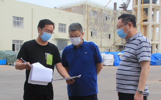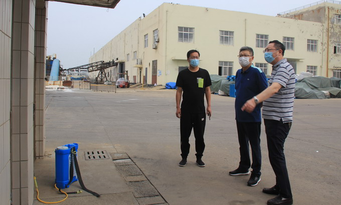 8月10日下午,爱体育首页(中国)网页版公司总会计师匡友本到我公司检查指导疫情防控工作,我公司党委书记、董事长、总经理朱桂玉,党委副书记、纪委书记、工会主席曹开明陪同。