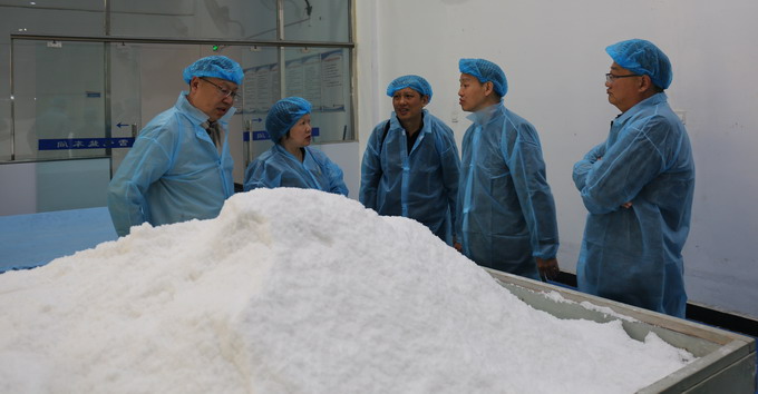 伍茂辉一行参观了公司雪花盐车间、包装盐车间、加工盐车间,详细了解了我公司盐产品产销情况;双方就加强合作事宜进行了洽谈,双方商定在巩固原有业务合作的基础上,在进一步加强雪花盐和颗粒盐等产品的市场开拓方面加强合作交流。(金宣)