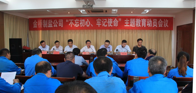 9月24日,金桥制盐公司召开“不忘初心、牢记使命”主题教育动员会议,党委书记、董事长、金桥制盐公司主题教育领导小组组长朱桂玉作动员讲话,要求全公司上下紧密团结在以习近平同志为核心的党中央周围,以高度的政治责任感、良好的精神状态、求真务实的作风,深入扎实地开展好主题教育,努力实现理论学习有收获、思想政治受洗礼、干事创业敢担当、为民服务解难题、清正廉洁作表率的具体目标,以优异成绩庆祝新中国成立70 周年。爱体育首页(中国)网页版党委主题教育第二指导组组长、爱体育首页(中国)网页版公司工会副主席卢同根,副组长、爱体育首页(中国)网页版党群工作部副部长赵世聪到会指导。公司党委副书记、纪委书记、工会主席李昊睿主持会议。副总经理惠志明、曹开明、田磊参加会议。