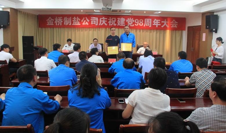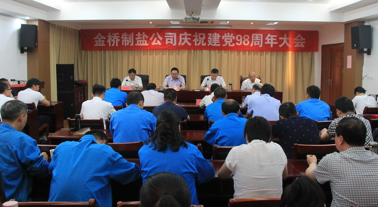 6月27日上午,我公司在三楼会议室召开庆祝建党98周年大会暨“不忘初心、牢记使命”专题党课。公司领导班子成员,各车间、单位、部室副科级以上人员、受表彰人员和新党员参加了会议,大会由党委副书记、纪委书记、工会主席李昊睿主持。