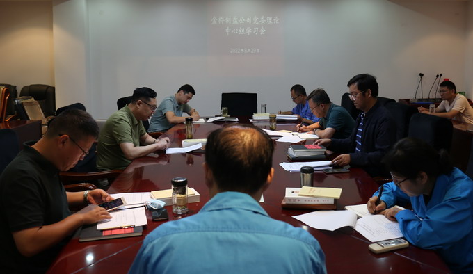 8月29日,我公司召开党委理论中心组学习会,集体研讨学习《求是》杂志2022年第16期发表习近平文章:“全党必须完整、准确、全面贯彻新发展理念”;学习《习近平谈治国理政》第四卷第二章:“坚持党的全面领导”,第三章:“始终坚持人民至上”;学习《习近平经济思想学习纲要》第一章:“加强党对经济工作的全面领导”。会议由公司党委书记、董事长朱桂玉主持,公司党委班子及其他党委理论中心组成员参加了学习会。党委班子成员作交流发言。(金宣)