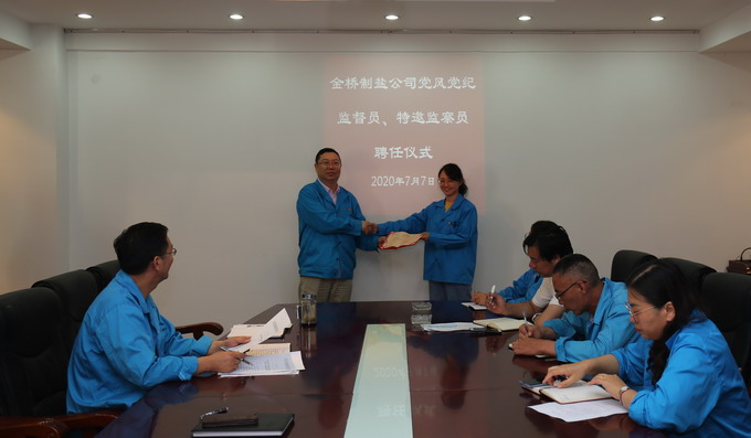 为进一步加强党风廉政建设,拓宽监督渠道,构建党内监督、行政监察与群众监督相结合的监督制约机制,7月7日,我公司在二楼会议室举行党风党纪监督员、特邀监察员聘任仪式,党委书记、董事长、总经理朱桂玉为卢明江、徐元等6名党风党纪监督员和徐永亮、陈东等6名特邀监察员颁发了聘书。(金宣 金纪)