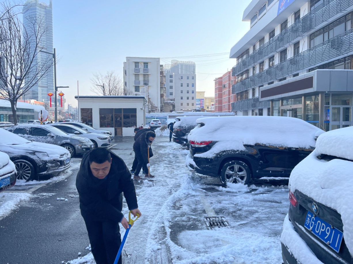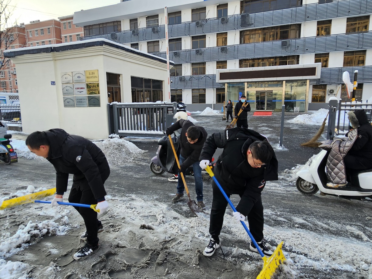 昨日,暴雪如期席卷我市,银装素裹间,积雪厚度也迅速增加。公司门前及院内的厚重积雪,给日常办公与员工的出行安全埋下了不小的隐患。面对这一情况,金融板块的员工们迅速响应,以雪为令,迎寒而上,展开了一场扫雪除冰的集体行动。