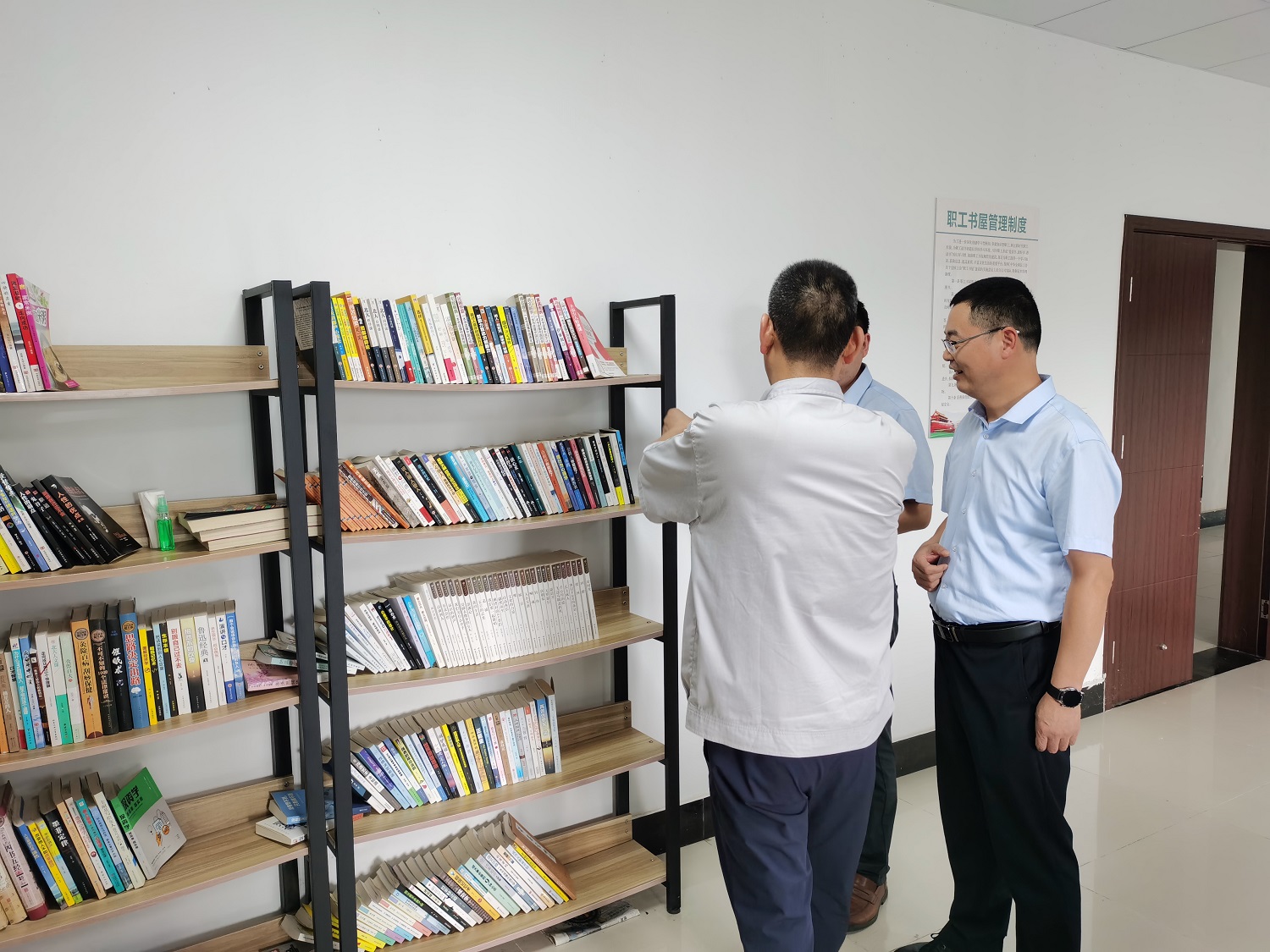 为进一步丰富职工文体生活,学习爱体育首页(中国)网页版内兄弟企业先进典型经验做法,做好职工书屋的创建工作,8月1日,资产公司党支部副书记、金融板块工会主席王顺友带队赴神特新材料参观学习。