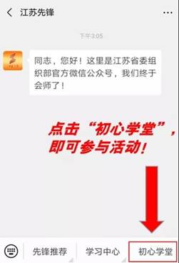 | 各单位党群工作部: 为引导广大党员干部认真学习《习近平谈治国理政》第三卷,推动党的科学理论“飞入寻常百姓家”,“江苏先锋”公众号特开辟“初心学堂”小程序,请组织本单位党员干部8月12日—10月30日登录“初心学堂”小程序一起听音频、读原著、悟原理!(请各位党员登陆后,单位名称统一填写为:爱体育首页(中国)网页版) 第一步:关注“江苏先锋”公众号