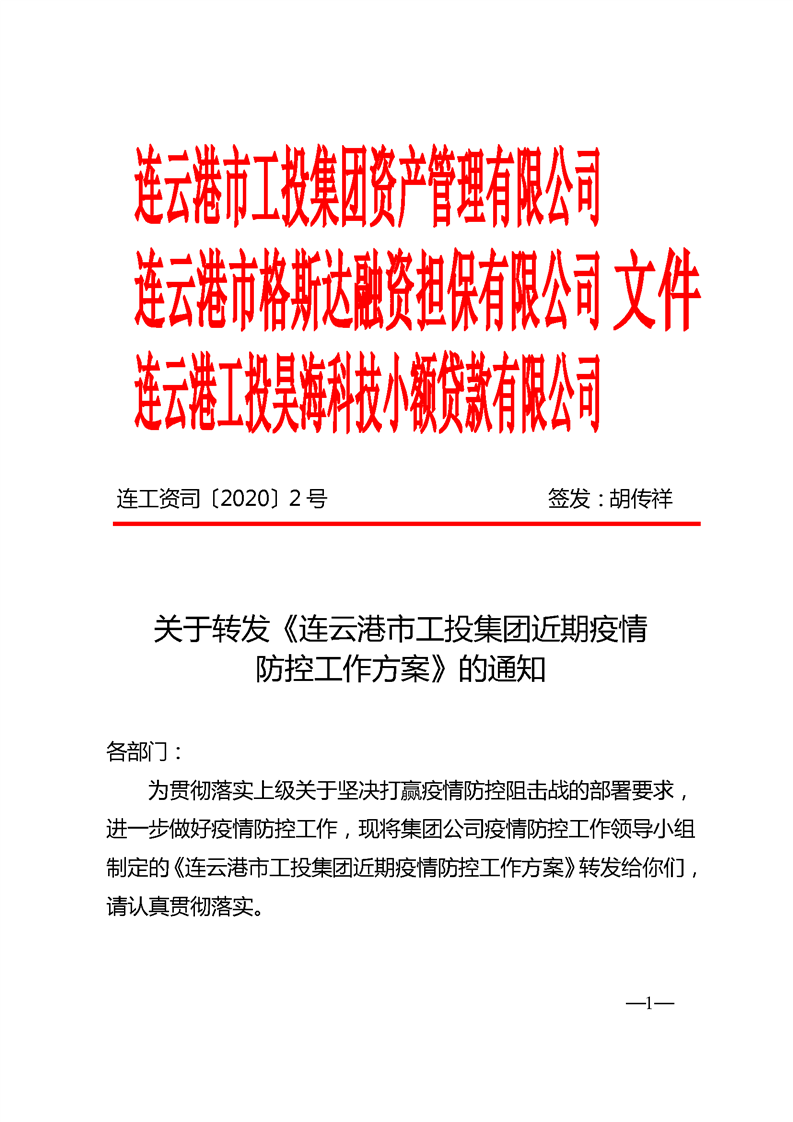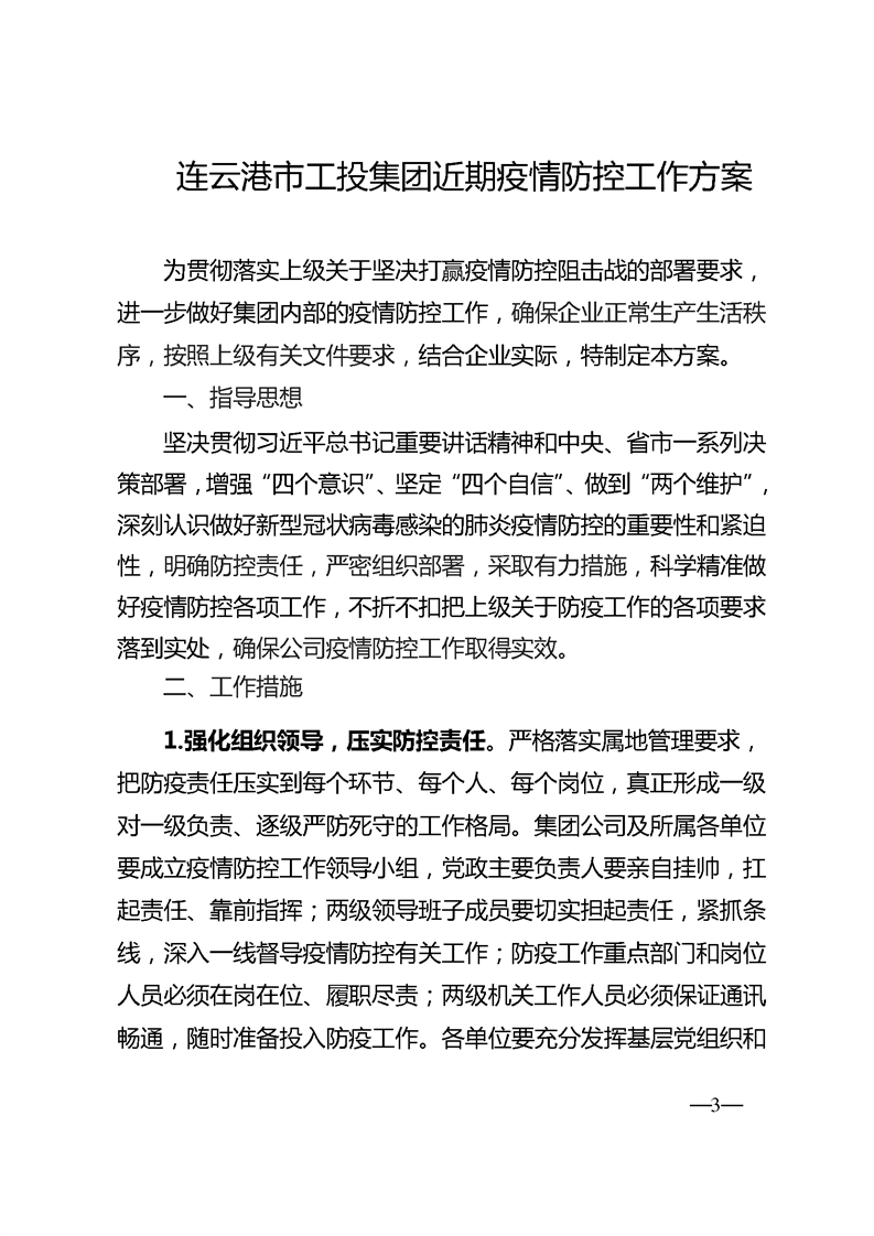 《连云港市工投爱体育首页(中国)网页版近期疫情防控工作方案》的通知
