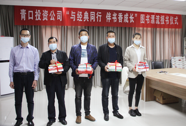 4月26日下午,青口投资公司工会在公司职工书屋举办了“与经典同行,伴书香成长”图书漂流活动启动仪式,公司党委副书记、工会主席梁永,纪委书记朱文兵应邀出席并为8个分会授书。