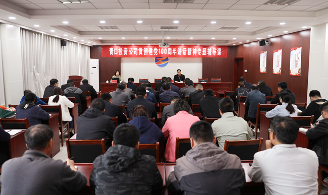为了深入学习贯彻习近平总书记在庆祝建党100周年大会上的重要讲话精神,进一步教育引导全体党员干部学党史、悟思想、办实事、开新局,不断从党史中领悟前进的智慧和力量。10月21日下午,青口公司举办贯彻建党100周年讲话精神专题辅导课,邀请市委党校法政教研室主任,党史学习教育市委宣讲团成员朱云同志作专题辅导课。公司领导班子成员、各单位党政工负责人、机关全体管理人员以及基层单位在职党员参加。会议由党委副书记梁永主持。