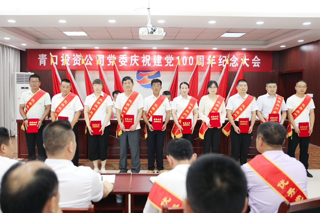 为了庆祝中国共产党成立100周年,继承和发扬党的光荣传统,彰显基层党组织的战斗堡垒作用和党员先锋模范作用,6月30日上午,青口投资公司党委隆重召开庆祝建党100周年纪念大会暨“七一”表彰大会。公司领导班子成员、各单位党政工负责人、机关副科级以上党员、受表彰的先进基集体和个人以及新入党的预备党员。