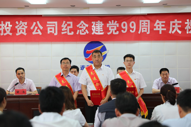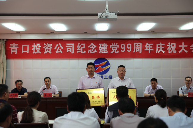 为了庆祝中国共产党建党99周年,继承和发扬党的光荣传统,彰显基层党组织的战斗堡垒作用和党员先锋模范作用,6月28日上午,青口投资公司隆重召开纪念建党99周年庆祝大会暨“七一”表彰大会。会议由党委副书记、工会主席梁永主持,全体领导班子成员、各单位党政负责人、优秀党员代表、机关全体管理人员参加会议。