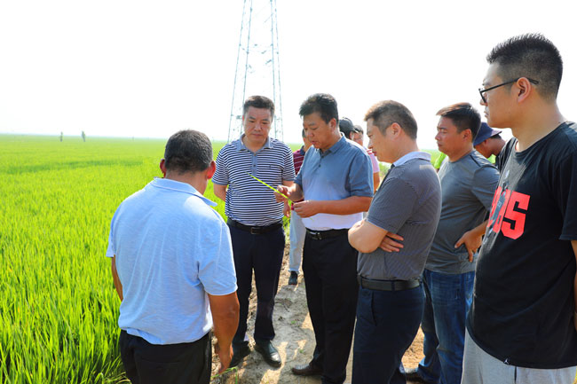 在随后的座谈会上,条田工代表邢建华、俞正猛、赵华兵、肖昌连作情况交流,大新农场针对当前水稻中期生产管理情况进行了详细汇报。农技师樊家选针对当前生产实际,提出了农事指导具体意见。