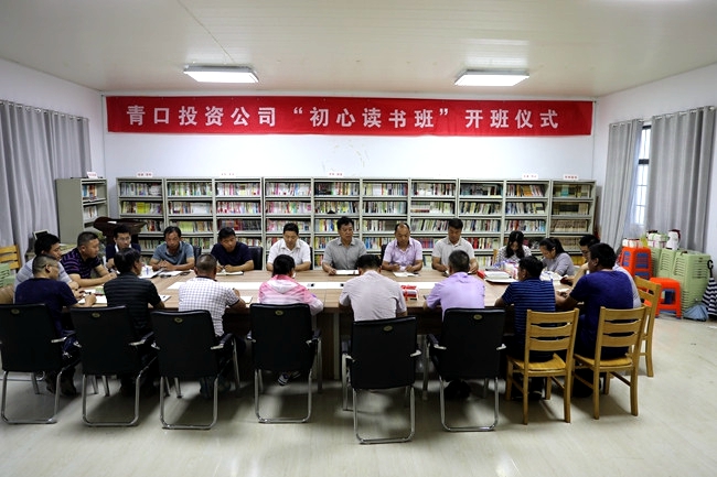 8月1日下午,青口投资公司“初心读书班”开班仪式在图书阅览室如期启动。分管领导、副总经理周绪祥、各单位党政负责人、优秀青年员工代表参加。