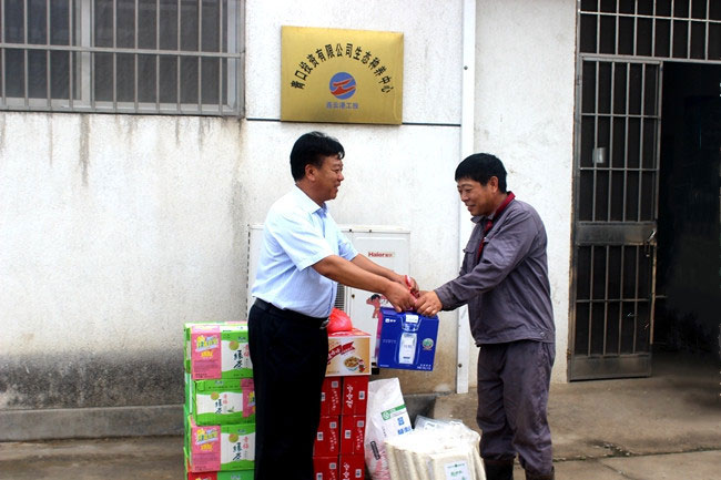 7月12日,公司领导班子成员带着绿豆、白糖、绿茶、八宝粥等防暑降温物品,分组到每个基层单位为职工们 带去丝丝清凉和滴滴关爱 。每到一处,领导们都亲自为职工们送上降温物品,并叮嘱他们要合理安排工作时间,注意防暑休息,一句句关心的话语,一声声诚挚的问候,让职工们感受到了企业对他们的深切关怀。