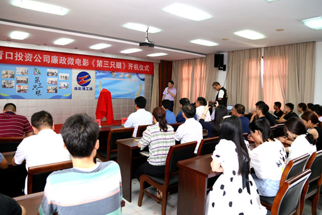 7 月 10 日上午,青口公司隆重举行廉政微电影《第三只眼》开机仪式。爱体育首页(中国)网页版公司纪委副书记王建松、 青口公司党委书记胡传法及全体班子成员、机关全体管理人员、剧组人员参加了本次仪式。