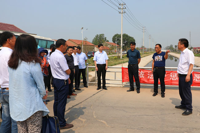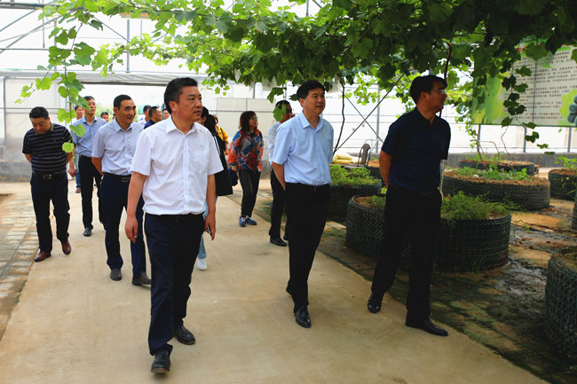 王董事长一行先后到玉田农庄、大新农场有机水稻种植基地、养殖池塘、小附河亮化工程现场、盐田玉米生产车间、展销中心等地进行了考察调研。