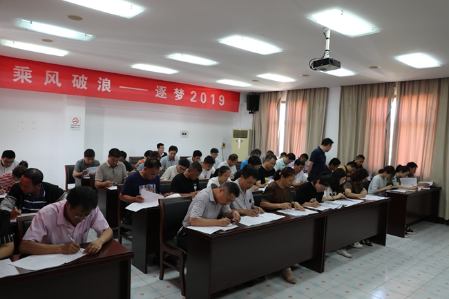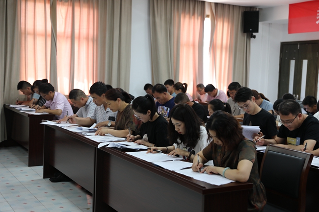 7 月 1 日下午,青口投资公司党委组织人员开展党章党规党纪知识测试,公司副科级以上管理人员以及机关全体管理人员共计 50 余人参加此次测试。