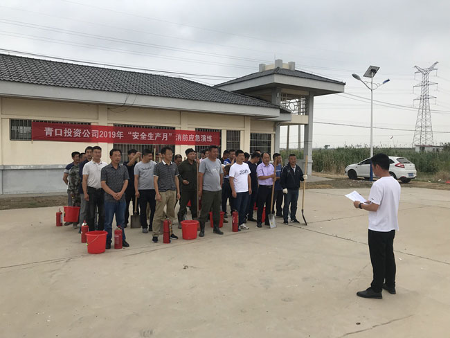 为切实做好秸秆综禁、防汛等安全应急事件处理工作,提高我公司应急处置能力。6月26日上午,青口投资公司在粮食仓储中心举办“安全生产月”暨秸秆综禁消防应急演练,公司应急队伍全体出动,副总经理周绪祥,总经理助理张铭杨出席应急演练。