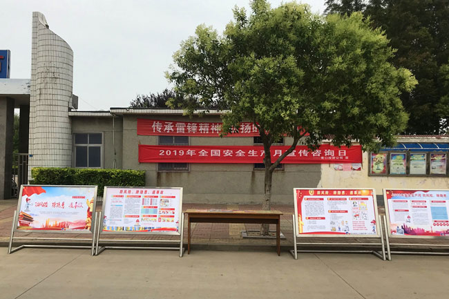 6月1 3 日上午,公司举行以 “ 防风险、除隐患、遏事故 ”为主题的“安全生产月”宣传咨询日活动。活动现场,张贴安全月主题挂图12幅,展板5块,发放《 营造安全环境,维护社会稳定 》、《 应急管理基础知识 》、《 防风险、除隐患、遏事故 》、《 用电安全十不准 》 、《急救自救与互救知识》 等宣传单 4 00余张。