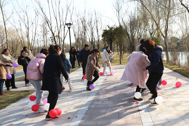 为使大家身心得到最大放松,投入户外体验清新大自然,在丝路小镇公园进行了“三月女人天 别样妇女节”主题户外活动。游戏“你画我猜”中,队员们有的配合默契一猜既中,也有的用肢体艰难的比划着,引的大家捧腹大笑。“踩气球”游戏更是让现场气氛达到沸点,每人都放开平日工作中的严谨,放松心情在场地上追逐奔跑。大家在游戏中收获了欢声笑语及片片感动,同时,通过游戏提高大家的合作意识和进取精神,营造浓郁节日气氛。