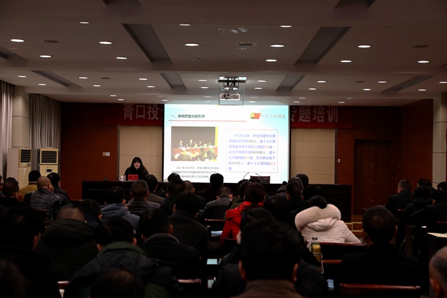 为进一步强化作风建设,增强党员干部廉洁从业意识, 1 月 11 日上午,青口公司邀请市纪委 党风政风监督室主任绳艳 作了题为《落实八项规定精神 从严从实改进作风》的专题报告,爱体育首页(中国)网页版纪委书记汪群、公司领导班子成员和全体在岗党员参加此次讲座,讲座由党委书记、董事长胡传法主持。