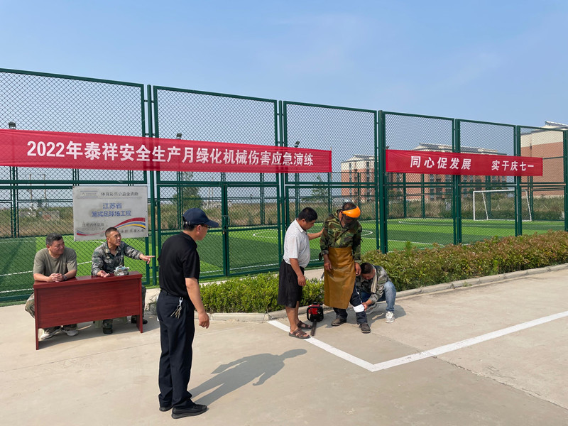 为了有效应对突发事件的处置能力,提高员工安全防范意识。6月22日下午,在泰祥门前小广场举行泰祥绿化机械伤害应急演练。