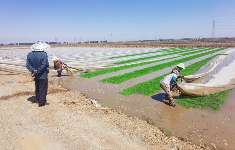近日,大新农场自营农田机插秧苗已全部揭开无纺布,秧苗整体长势较好,一片绿意盎然。目前播种较早的秧苗苗龄在三叶一心。(刘 杨)